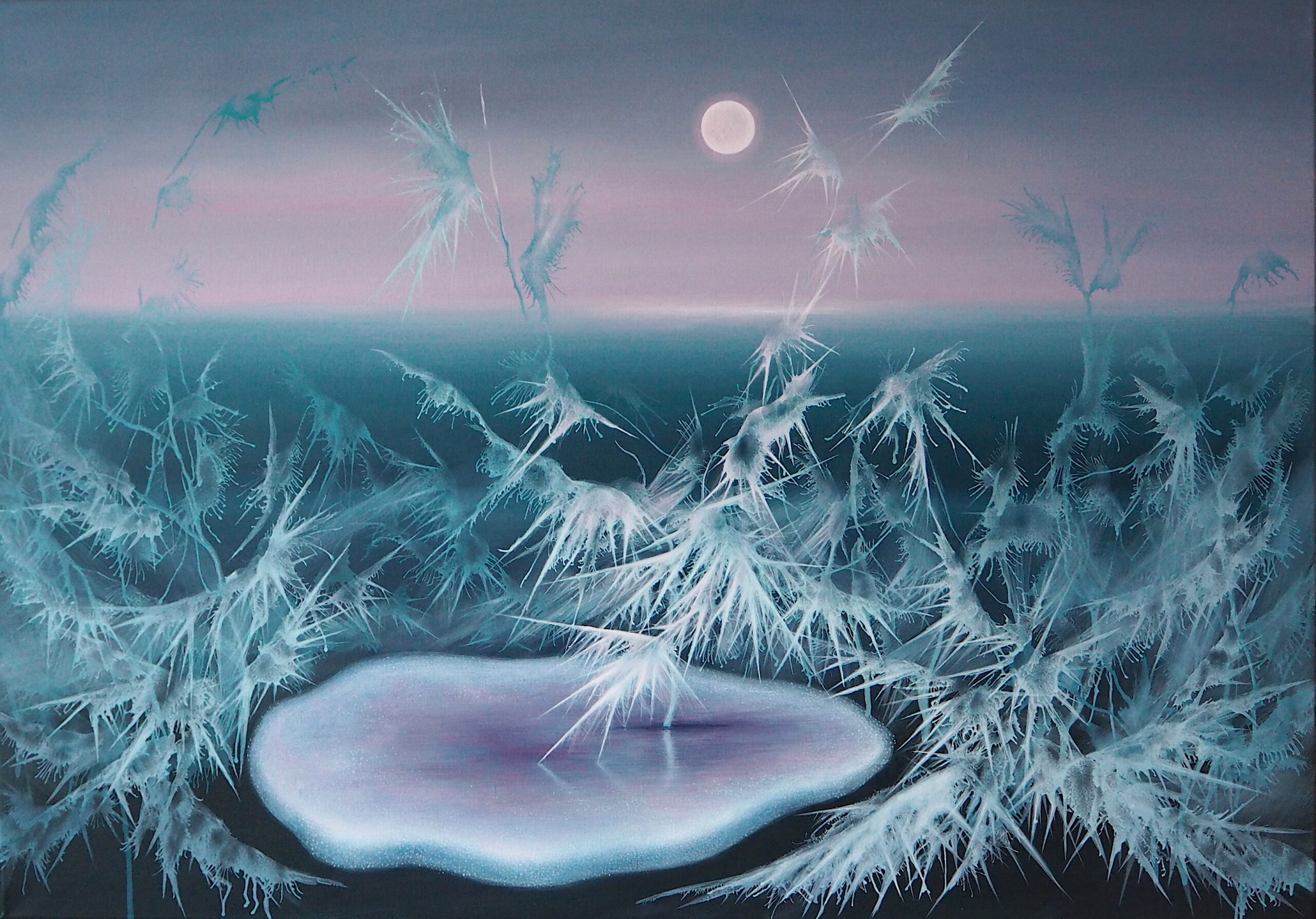 - Frozen orchard, 2024, akryl na płótnie, wym. 100x80 cm.